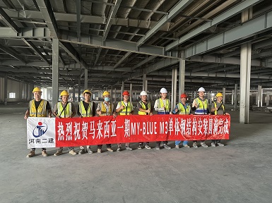 河南二建集團(tuán)鋼結(jié)構(gòu)有限公司馬來西亞一期MY-BLUE M3單體鋼結(jié)構(gòu)吊裝圓滿完成