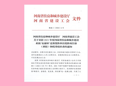 河南二建集團(tuán)鋼結(jié)構(gòu)有限公司焊工班組榮獲“2021年度河南省住房和城鄉(xiāng)建設(shè)系統(tǒng)‘安康杯’競賽優(yōu)勝班組”稱號(hào)