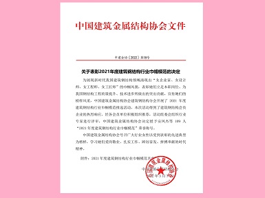 河南二建集團(tuán)鋼結(jié)構(gòu)有限公司郁紅麗榮獲“2021年度建筑鋼結(jié)構(gòu)行業(yè)巾幗模范“榮譽(yù)稱號(hào)