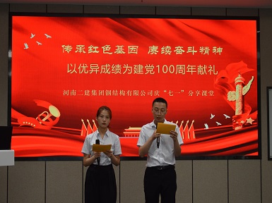 河南二建集團(tuán)鋼結(jié)構(gòu)有限公司舉辦慶“七一”分享課堂活動(dòng)--傳承紅色基因 賡續(xù)奮斗精神 以優(yōu)異成績(jī)?yōu)榻h100周年獻(xiàn)禮