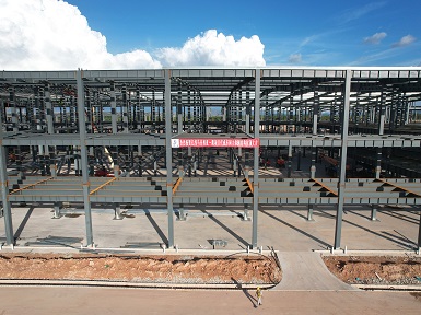 222024.08億緯馬來西亞一期項目施工總承包工程化成車間二標(biāo)段主體鋼結(jié)構(gòu)順利封頂