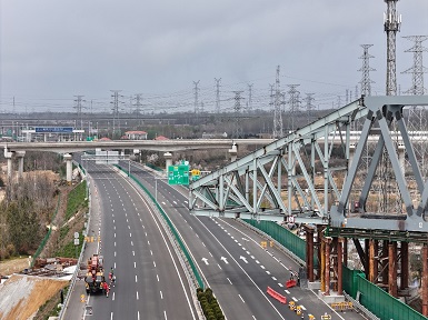 河南二建集團(tuán)鋼結(jié)構(gòu)有限公司跨董梁高速特大橋鋼桁梁項(xiàng)目首次頂推施工順利完成