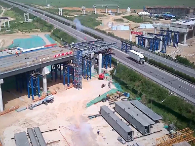 河南二建集團(tuán)鋼結(jié)構(gòu)有限公司蘭考至沈丘高速公路蘭考至太康段三標(biāo)鋼箱梁施工工程順利開(kāi)始首次頂推施工